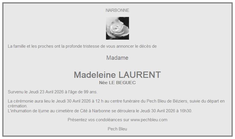 CENTRE FUNERAIRE DE BEZIERS le jeudi 30 avril à 12 heures 30