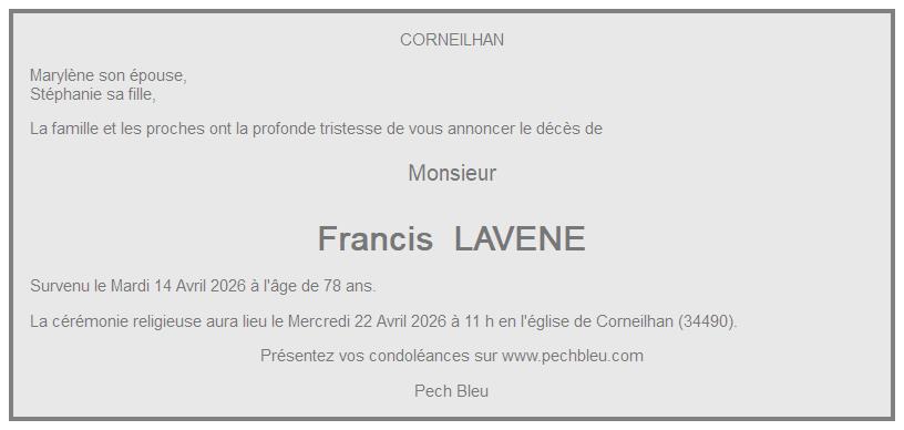 Décédé à Béziers (34500, France) le mardi 14 avril 2026 à l'âge de 78 ans