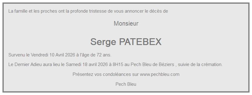 Avis de décès de Monsieur Serge PATEBEX