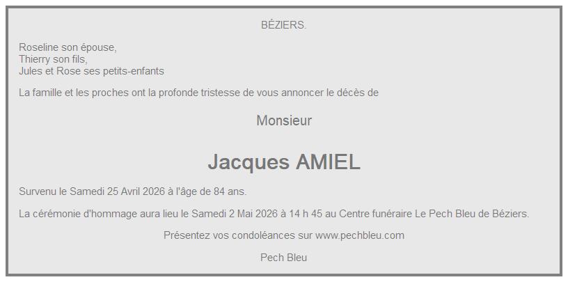 Avis de décès de Monsieur Jacques AMIEL