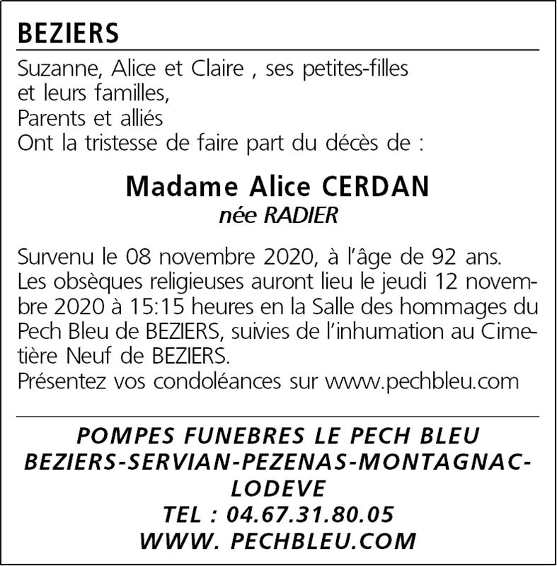 Madame Alice CERDAN née RADIER