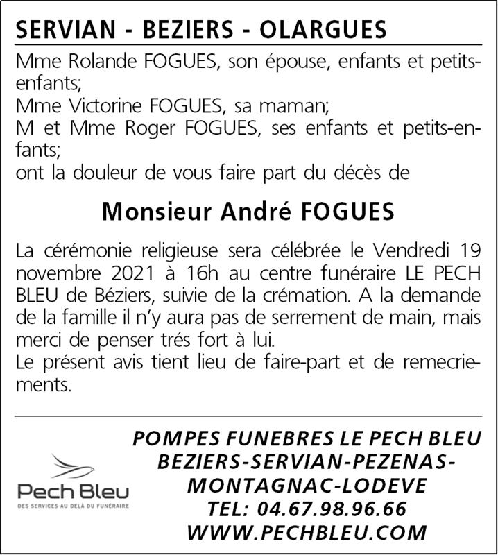 Décédé à Béziers (34500, France) le dimanche 14 novembre 2021 à l'âge de 70 ans