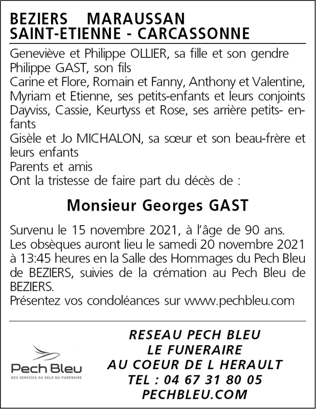 Décédé à Maraussan (34370, France) le lundi 15 novembre 2021 à l'âge de 90 ans