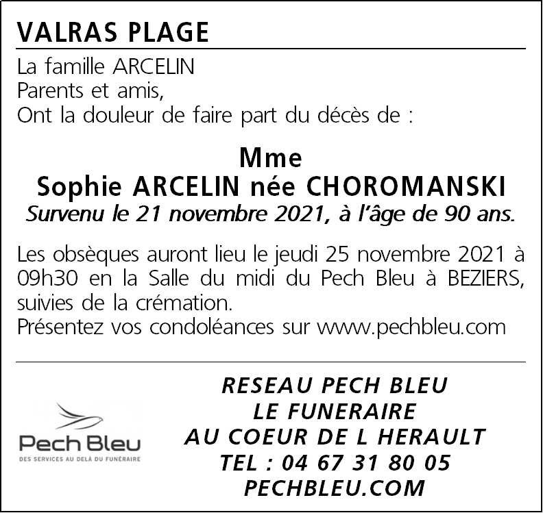 Décédée à Valras-Plage (34350, France) le dimanche 21 novembre 2021 à l'âge de 90 ans