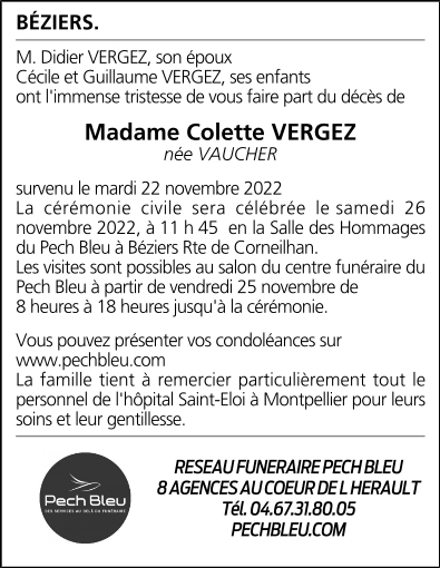 Décédée à Montpellier (34000, France) le mardi 22 novembre 2022 à l'âge de 65 ans