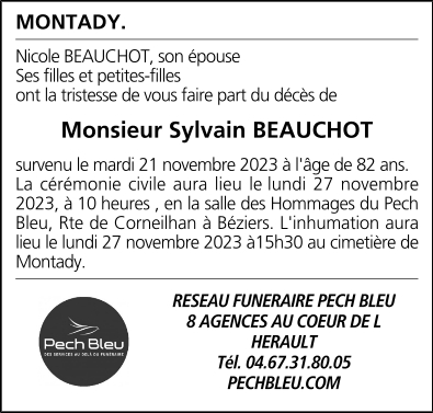 Décédé à Béziers (34500, France) le mardi 21 novembre 2023 à l'âge de 82 ans