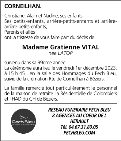 Madame Gratienne VITAL née LATOR