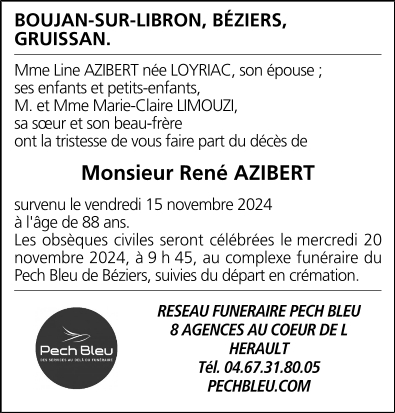 Décédé à Boujan-sur-Libron (34760, France) le vendredi 15 novembre 2024 à l'âge de 88 ans