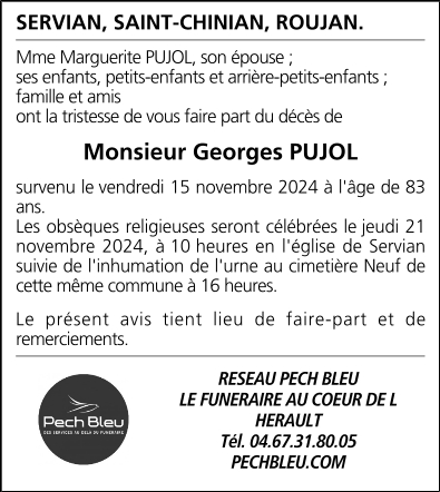 Décédé à Servian (34290, France) le vendredi 15 novembre 2024 à l'âge de 83 ans
