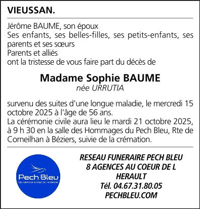 Décédée à Vieussan (34390, France) le mercredi 15 octobre 2025 à l'âge de 56 ans
