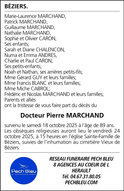Décédé à Béziers (34500, France) le samedi 18 octobre 2025 à l'âge de 89 ans