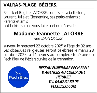 Madame Jeanne LATORRE née BARTOLOZZI