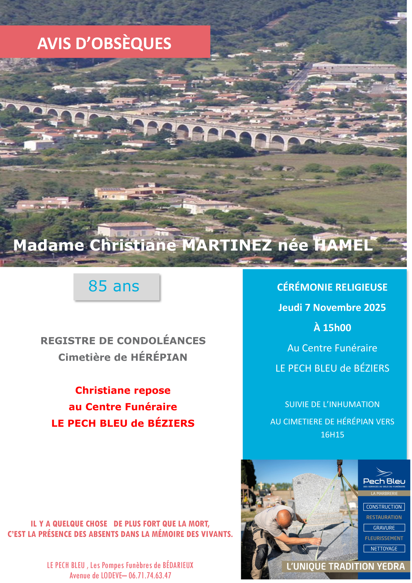 Décédée à Béziers (34500, France) le samedi 1 novembre 2025 à l'âge de 85 ans