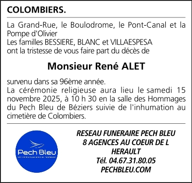 Décédé à Colombiers (34440, France) le lundi 10 novembre 2025 à l'âge de 95 ans