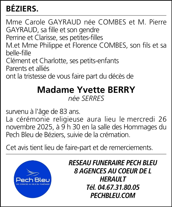 Veuve de Monsieur Pierre BERRY