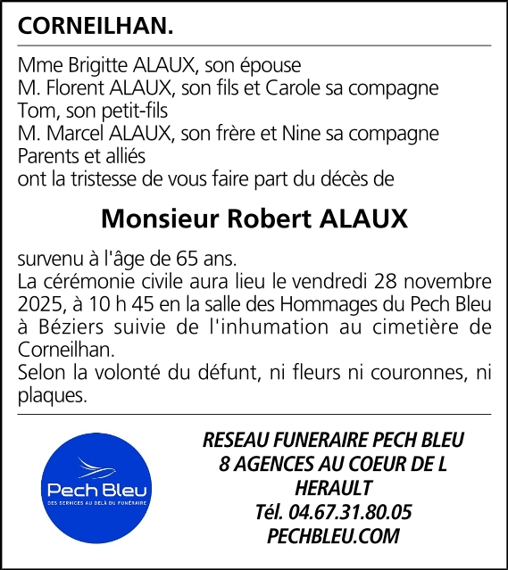Décédé à Béziers (34500, France) le dimanche 23 novembre 2025 à l'âge de 65 ans