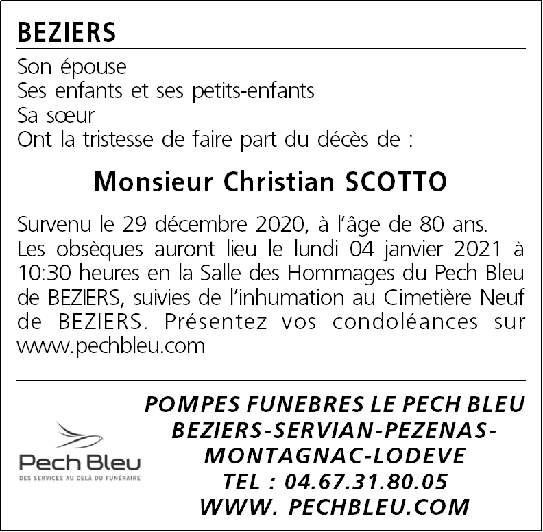 Décédé à Sérignan (34410, France) le mardi 29 décembre 2020 à l'âge de 80 ans