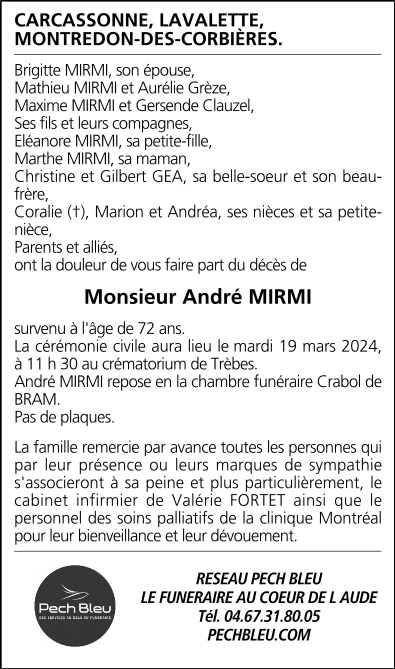 Décédé à Carcassonne (11000, France) le jeudi 14 mars 2024 à l'âge de 72 ans
