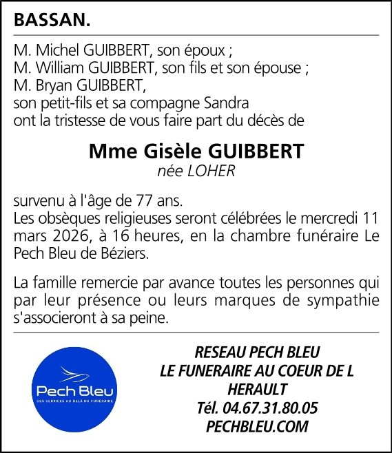 Décédée à Pézenas (34120, France) le jeudi 5 mars 2026 à l'âge de 77 ans