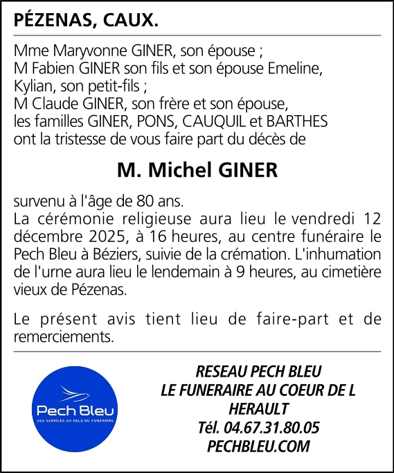 Décédé à Béziers (34500, France) le samedi 6 décembre 2025 à l'âge de 80 ans