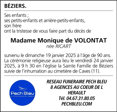 Madame Monique de VOLONTAT née RICART