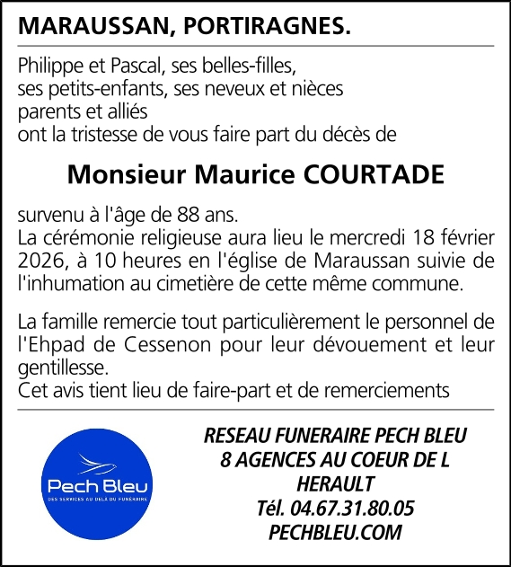 Décédé à Cessenon-sur-Orb (34460, France) le vendredi 13 février 2026 à l'âge de 88 ans