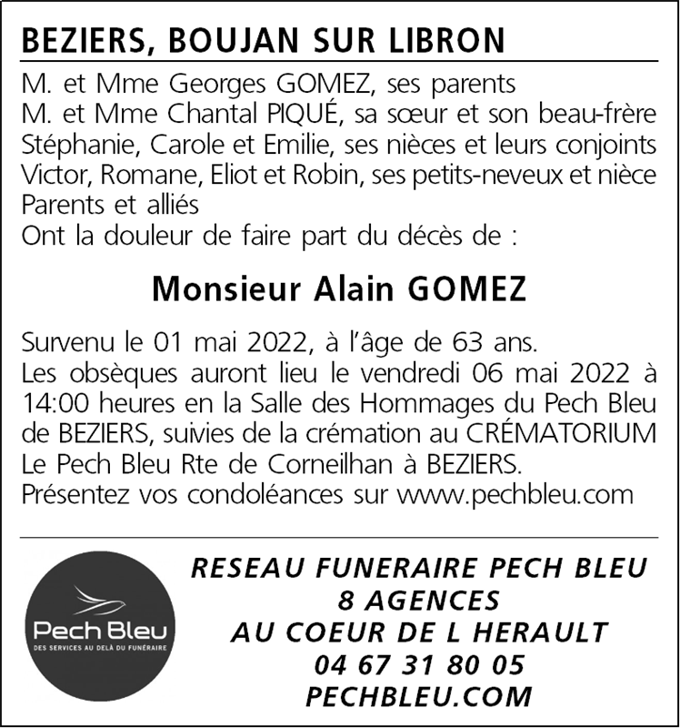 Décédé à Montpellier (34000, France) le dimanche 1 mai 2022 à l'âge de 63 ans