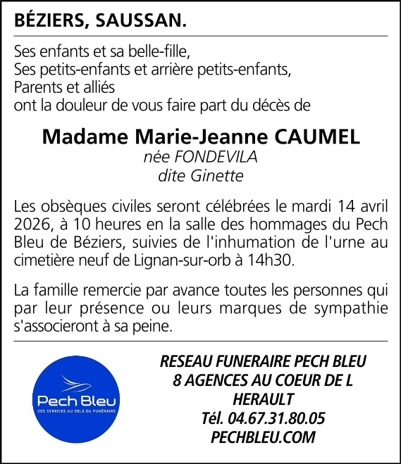 Madame Marie-Jeanne CAUMEL née FONDEVILLA