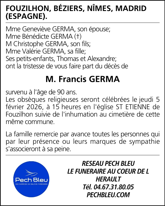 Décédé à Béziers (34500, France) le dimanche 1 février 2026 à l'âge de 90 ans