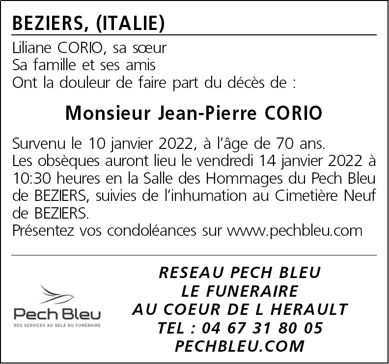 Décédé à Béziers (34500, France) le lundi 10 janvier 2022 à l'âge de 70 ans