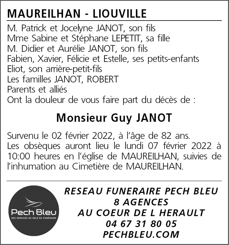 Décédé à Boujan-sur-Libron (34760, France) le mercredi 2 février 2022 à l'âge de 82 ans