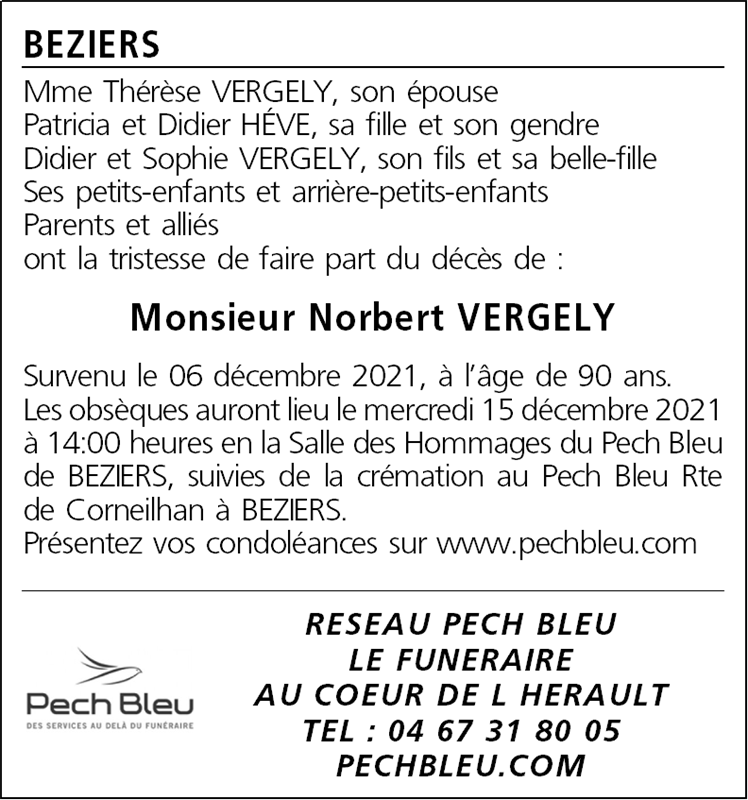Décédé à Béziers (34500, France) le lundi 6 décembre 2021 à l'âge de 90 ans