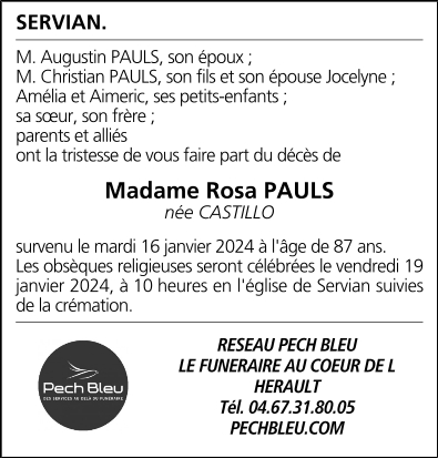 Epouse de Monsieur Augustin PAULS