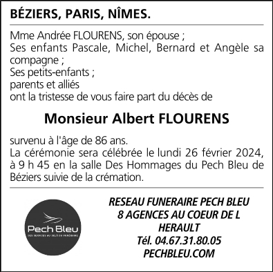 Décédé à Béziers (34500, France) le mardi 20 février 2024 à l'âge de 86 ans