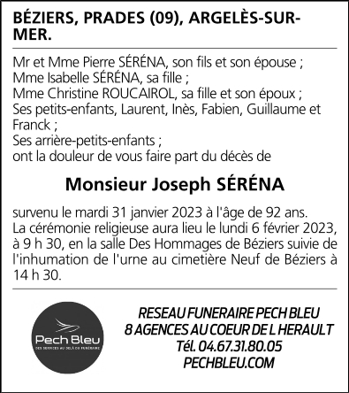 Décédé à Latour-Bas-Elne (66200, France) le mardi 31 janvier 2023 à l'âge de 92 ans