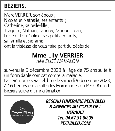 Décédée à Boujan-sur-Libron (34760, France) le mardi 5 décembre 2023 à l'âge de 75 ans
