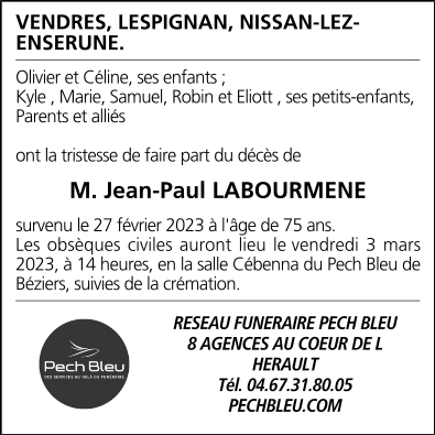Décédé à Béziers (34500, France) le lundi 27 février 2023 à l'âge de 75 ans