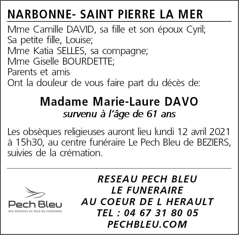 Décédée à Montpellier (34000, France) le mardi 6 avril 2021 à l'âge de 61 ans