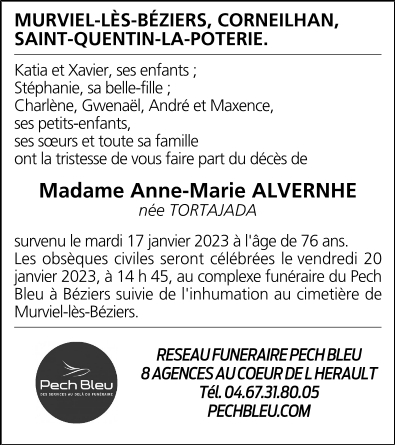 Madame Anne-Marie ALVERNHE née TORTAJADA