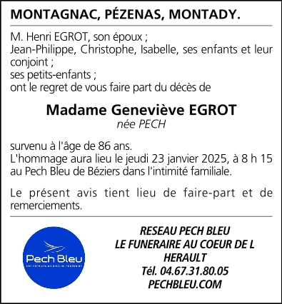 Madame Geneviève EGROT née PECH