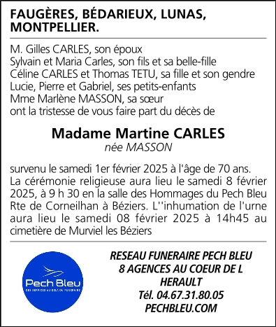 Décédée à Béziers (34500, France) le samedi 1 février 2025 à l'âge de 70 ans