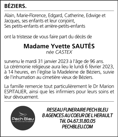 Madame Yvette SAUTÉS née CASTEX