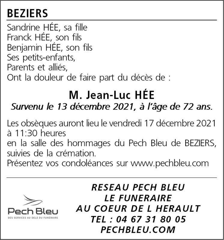 Décédé à Sérignan (34410, France) le lundi 13 décembre 2021 à l'âge de 72 ans