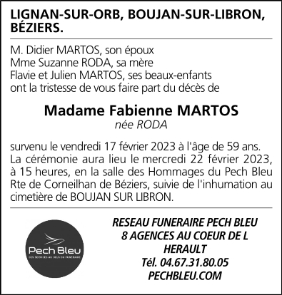 Décédée à Montpellier (34000, France) le vendredi 17 février 2023 à l'âge de 59 ans