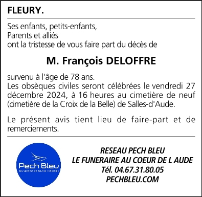 Décédé à Fleury d'Aude (11560, France) le mercredi 18 décembre 2024 à l'âge de 78 ans