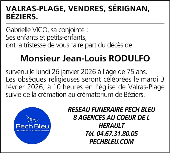 Décédé à Béziers (34500, France) le lundi 26 janvier 2026 à l'âge de 75 ans