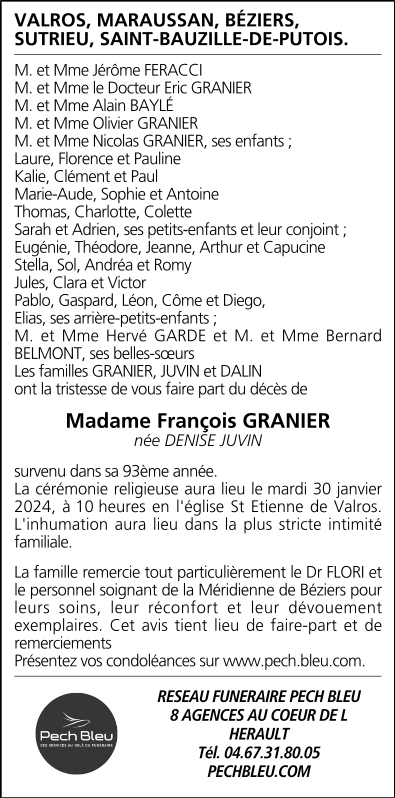 Veuve de Monsieur François GRANIER