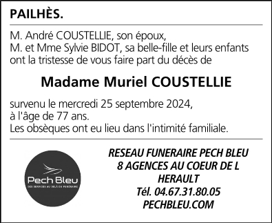 Décédée à Béziers (34500, France) le mercredi 25 septembre 2024 à l'âge de 77 ans