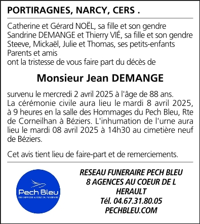 Décédé à Boujan-sur-Libron (34760, France) le mercredi 2 avril 2025 à l'âge de 88 ans