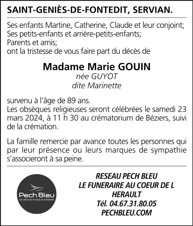 Née à Saint-Geniès-de-Fontedit (34480, France) le mardi 26 février 1935